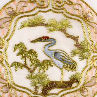アンティーク コースター 敷物 鶴の刺繍 中国骨董 金雲 GOLDEN CLOUD