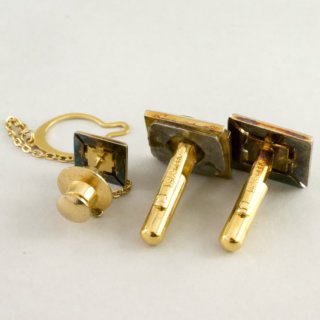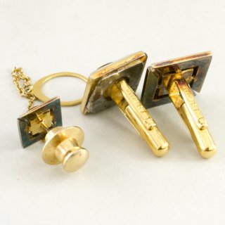 - 商品状態:中古品(古物)です。傷・汚れあります。カフスボタンの1つは補修(板当てハンダつけ)されています。ネクタイピンのピンに曲がりがあります。