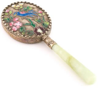 中国骨董 手鏡 鳥柄 エナメル 琺瑯 未使用