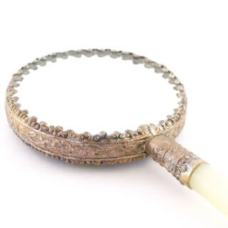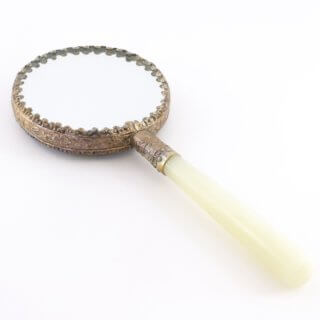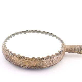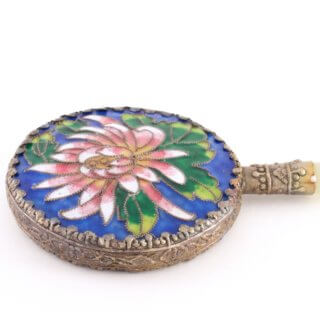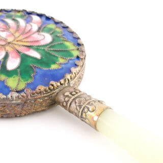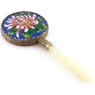 中国骨董 手鏡 菊柄 エナメル 琺瑯 未使用